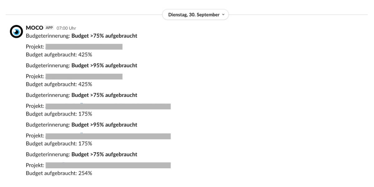 With the help of the budget warning in Slack, you not only improve your project management but also increase the profitability of your projects in the long term.