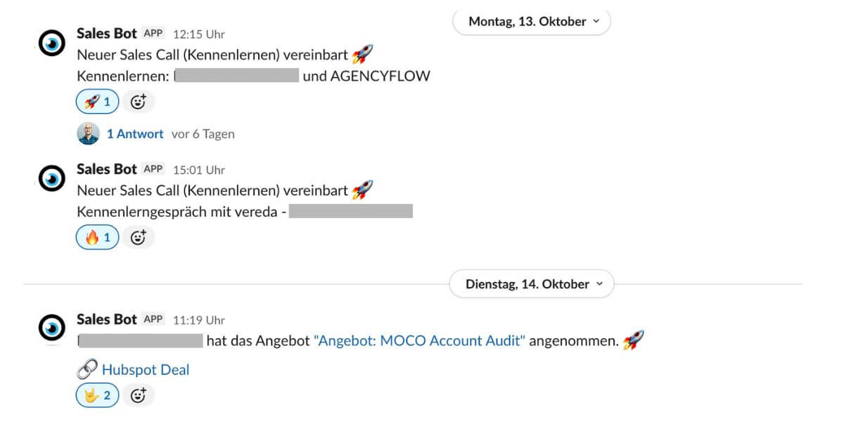 The MOCO & Slack notification bundle notifies you with over 5 triggers about the most important information from MOCO directly in Slack.